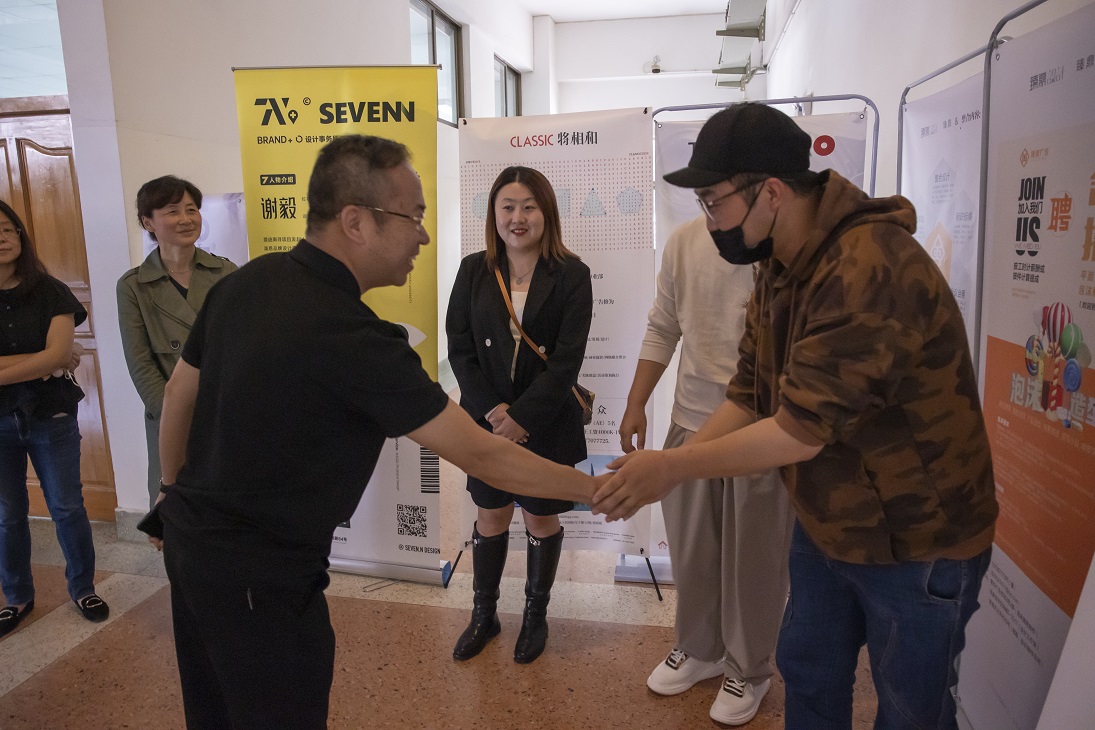答辩会后的现场招聘会吸引了近10家视觉艺术设计公司与会,其中不乏相关专业的著名企业及一流工作室。在招聘会现场,学院领导与企业老板就本届毕业生就业创业相关内容进行了深入交流,并达成了就业实习实践的深度合作意向。现场招聘企业的负责人表示,同学们的毕业设计作品不仅丰富精致还创意满满,众多线上线下落地产品完全可以经受住市场的考验,达到了社会就业创业的基本要求,他们愿意并且期待毕业生前来报名实习与就业。