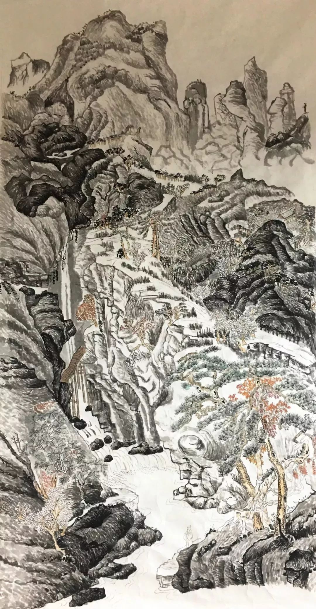 《庐山高图》 临摹 248x129cm  纸本水墨 2019