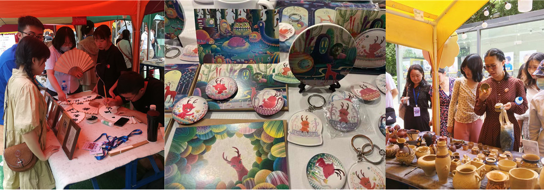 在创意手工集市上,来自美术系、视觉传达设计系等专业的“文艺摊主”们展示了他们运用专业特长、亲手设计的原创Q版滇剧人物形象手机壳、创意明信片、冰箱贴、手绘拼图、珍稀动物卡通形象徽章、陶艺、雕塑等精致的文创产品,吸引了不少市民前来“赶集”。通过多样化的素材选择和内容创意,表达了设计者们对于生物多样性保护、濒危动植物保护、民族文化传承的倡导和实践,许多精美的创意产品一经展出即被市民预定。