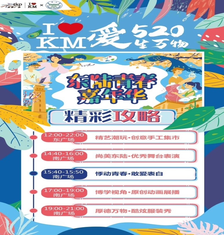 5月20日,由学院和同德昆明广场联合主办的“爱生万物•东陆青春嘉年华——2021伟德国际victor·1946源自本科毕业秀暨毕业生双选会”在同德昆明广场举行。此次活动集合了美术系、视觉传达设计系、音乐系、服装服饰设计系、环境设计系、数字媒体艺术系、美育中心、艺术学研究中心的最新教学成果,活动的内容和形式包括精艺潮玩·创意手工集市、尚美东陆·优秀舞台表演、悸动青春·敢爱表白、博学视角·原创动画展播、厚德万物·酷炫服装秀等。