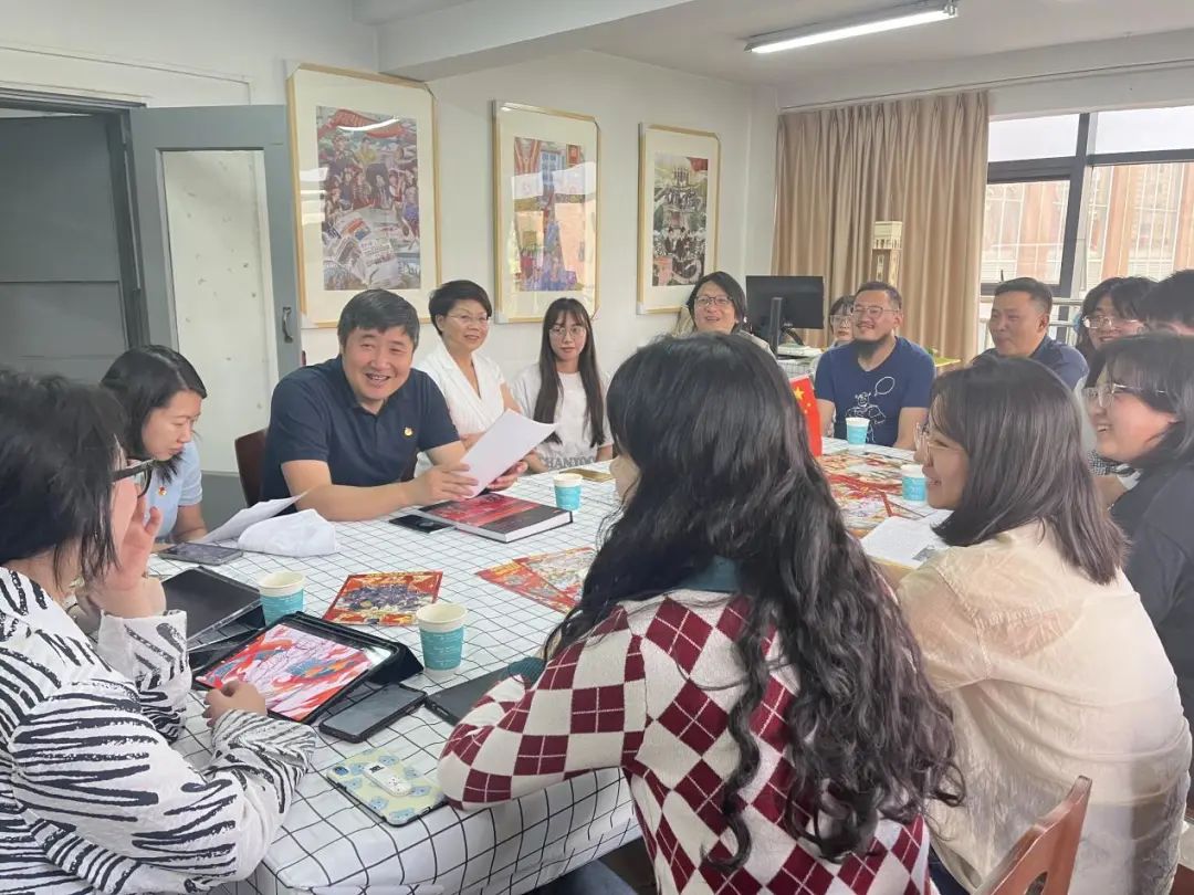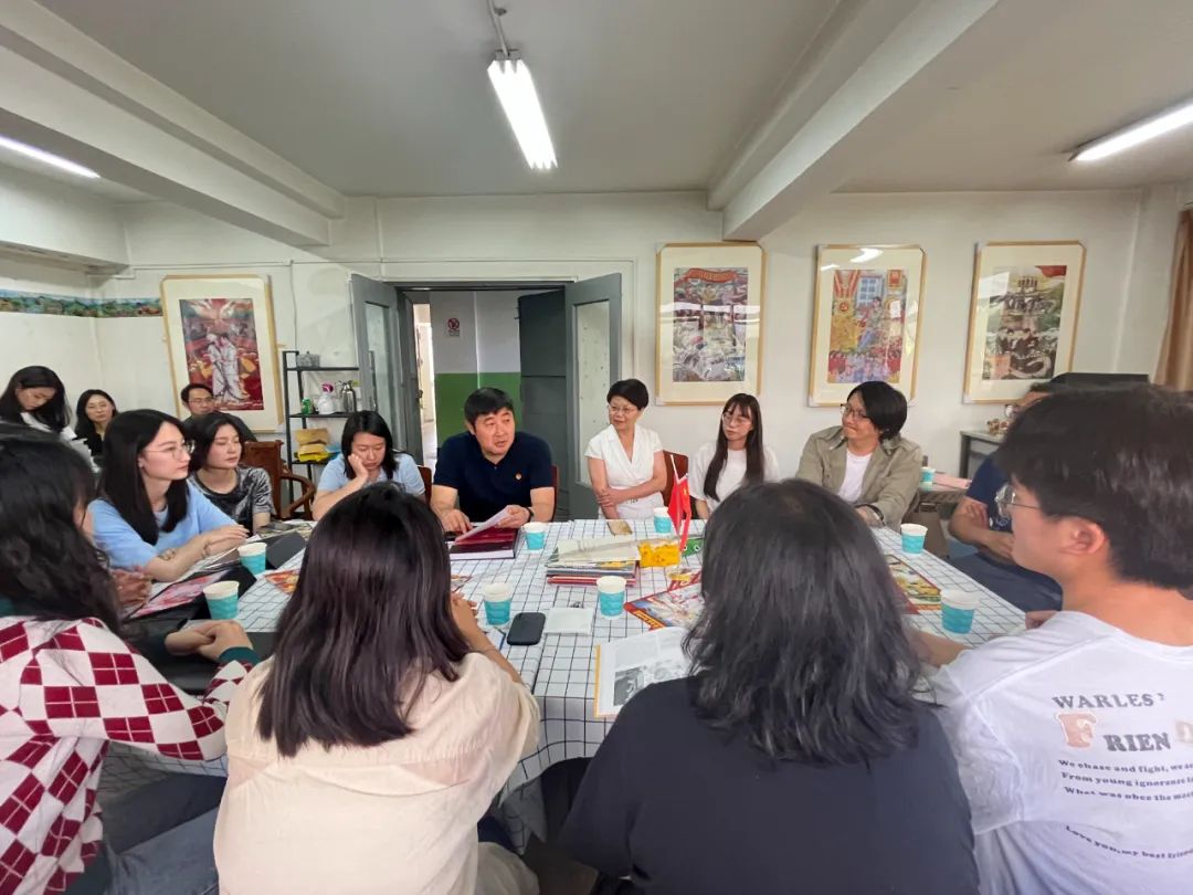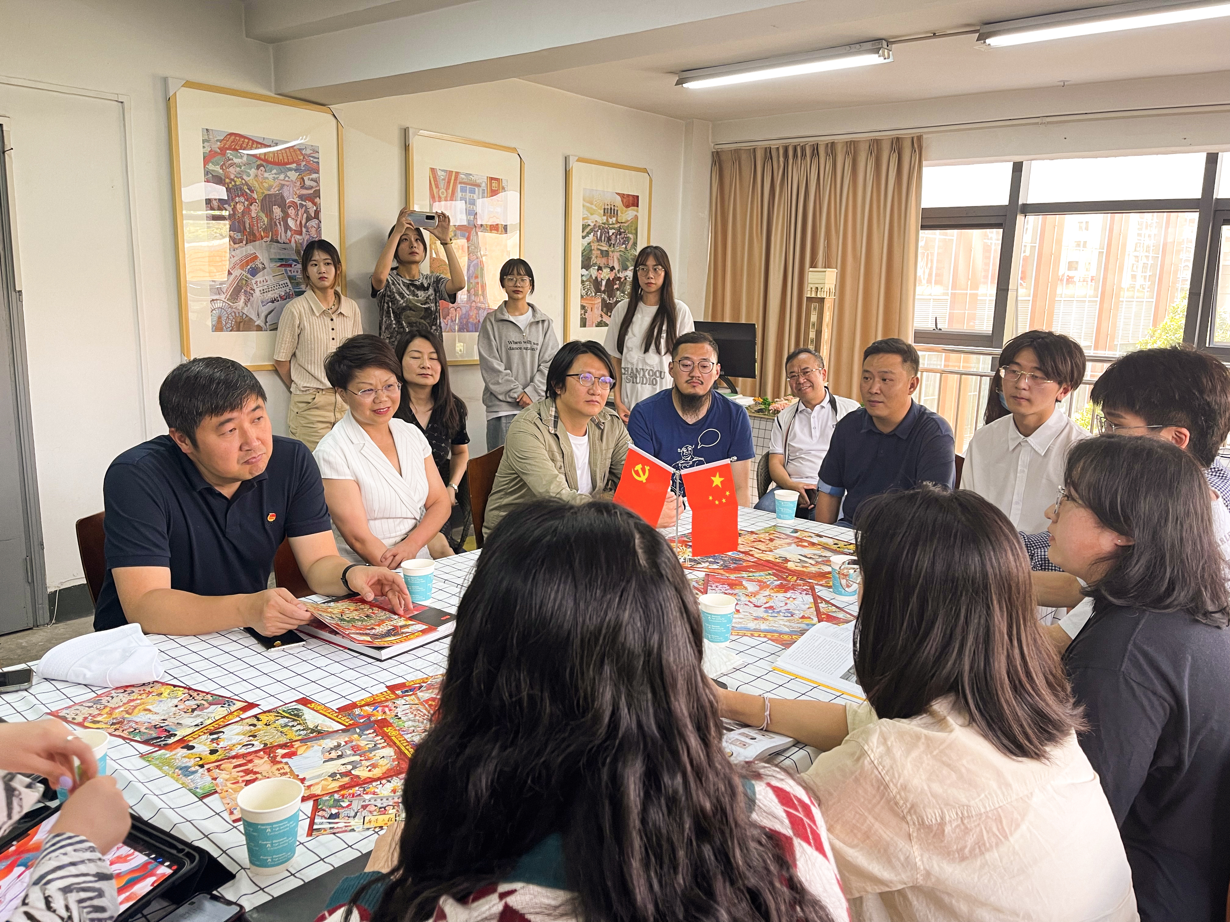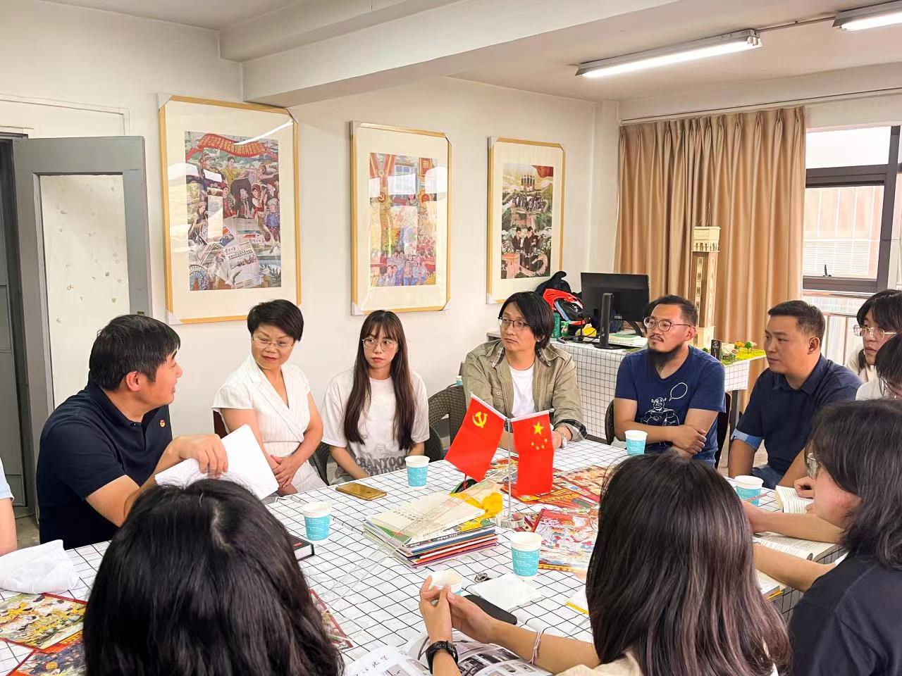 唐源书记对工作室团队的努力与付出表示了高度的肯定和赞赏。他指出,主题展已经成为了具有团青特色、深受青少年喜爱的红色“打卡地”,得到了省委领导和社会各界的一致好评,取得了较好的效果。他强调,在庆祝中国共产主义青年团成立100周年大会上,习近平总书记从赓续5000多年的中华民族青春力量、绵延百余年的中华民族伟大复兴进程出发,回顾了共青团由党缔造、与党同心、跟党奋斗的百年历程。这段百年的光辉历史在同学们的画笔下跃然纸上,让党的青年运动史更加生动地展现在新时代青年的面前,吸引了更多的青年了解历史,回望百年,展望复兴。唐源书记勉励同学们要坚定艺术报国的初心使命,向国家优秀的前辈艺术家们学习,厚植家国情怀,培育更多艺术精品。