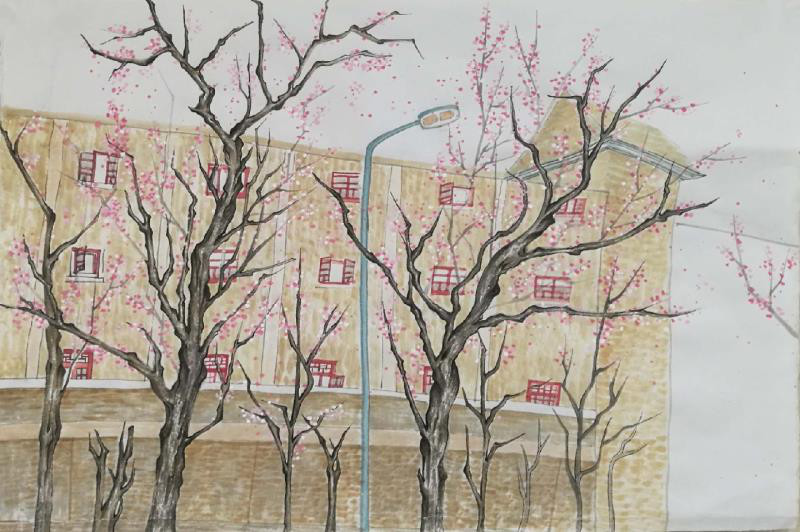 《家乡印象.樱花园》69*46cm