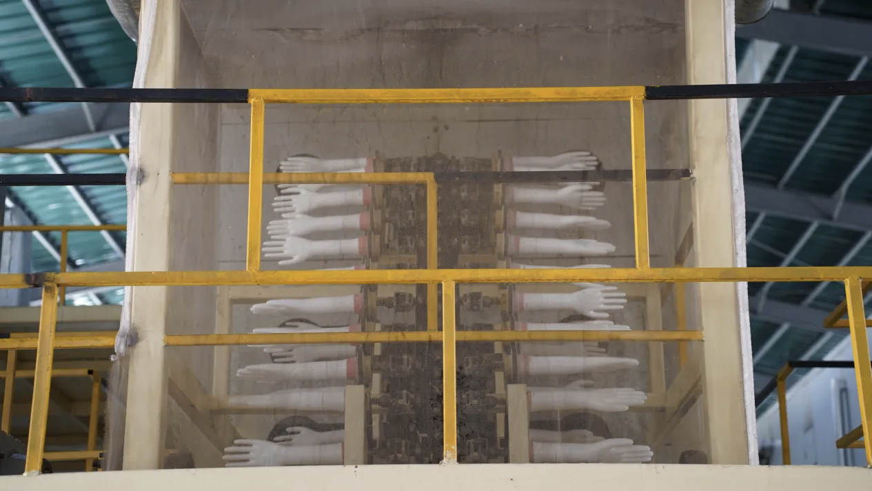 图7 森洁乳胶器材公司乳胶手套生产线 拍摄:杨照华