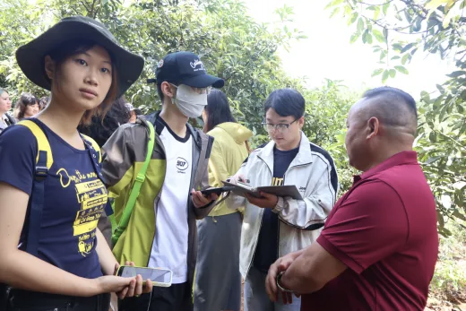从“宾弄赛嗨”纪实馆走出,实践团随后深入经济产业链一线,探寻“产业兴则民族兴”的发展逻辑。在岩副书记的带领下,实践团在孟连牛油果种植基地进行了参观学习。大家了解到孟连牛油果于2018年开始种植,目前种植面积已经达到1.2万亩以上,已经成为孟连县的重要支柱产业之一,连年带动当地农户增收。