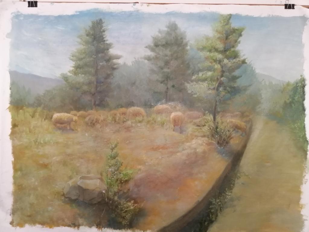 以大自然为学习的对象,像孩子那样观察自然,看待自然,通过绘画感觉、色彩、手法等因素相结合起来去研究自然,表现自然,然后感受自然,寻找与自然合适的相处距离,描绘自己眼中的自然。