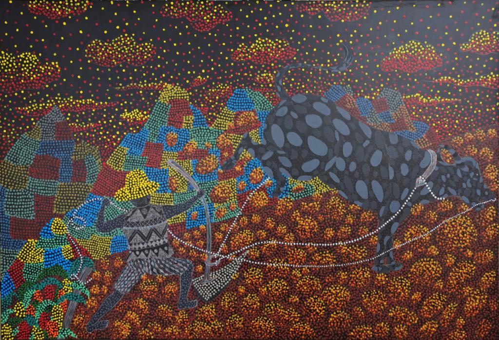 《童年趣事——犁地》 代东亮 2020 年 100×150cm 布面油画