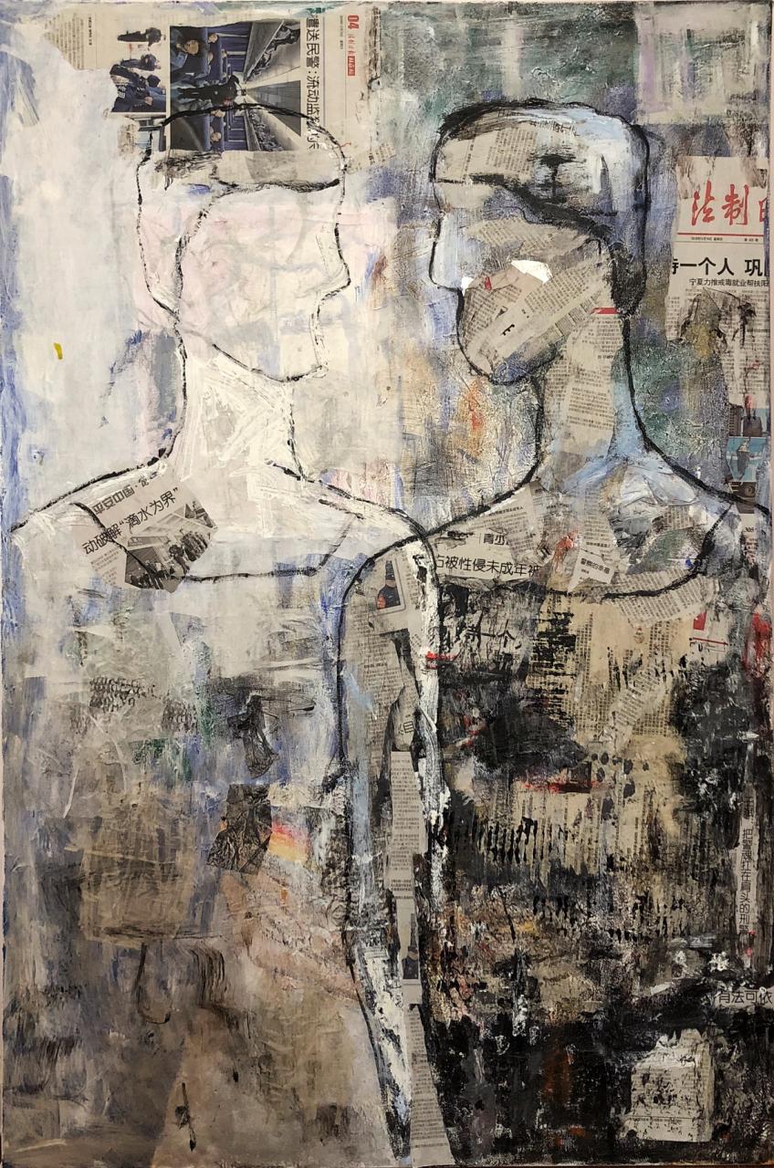 《两⾯》 综合材料拼贴 丙烯 80cm×120cm2020