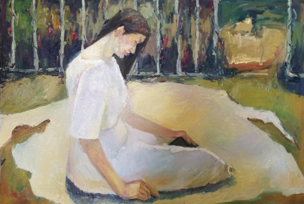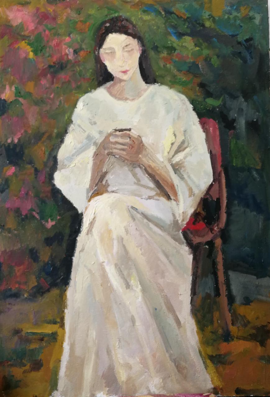缪欣,《花园里1》,布面油画,80cm×60cm