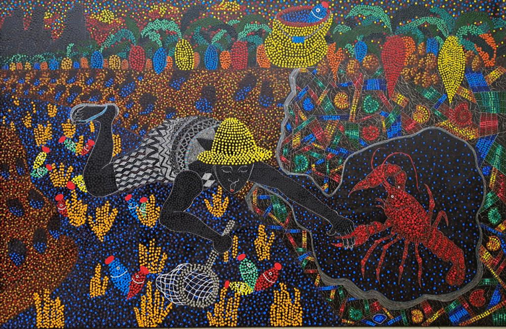 《童年趣事——抓龙虾》 代东亮 2020 年 100×150cm 布面油画
