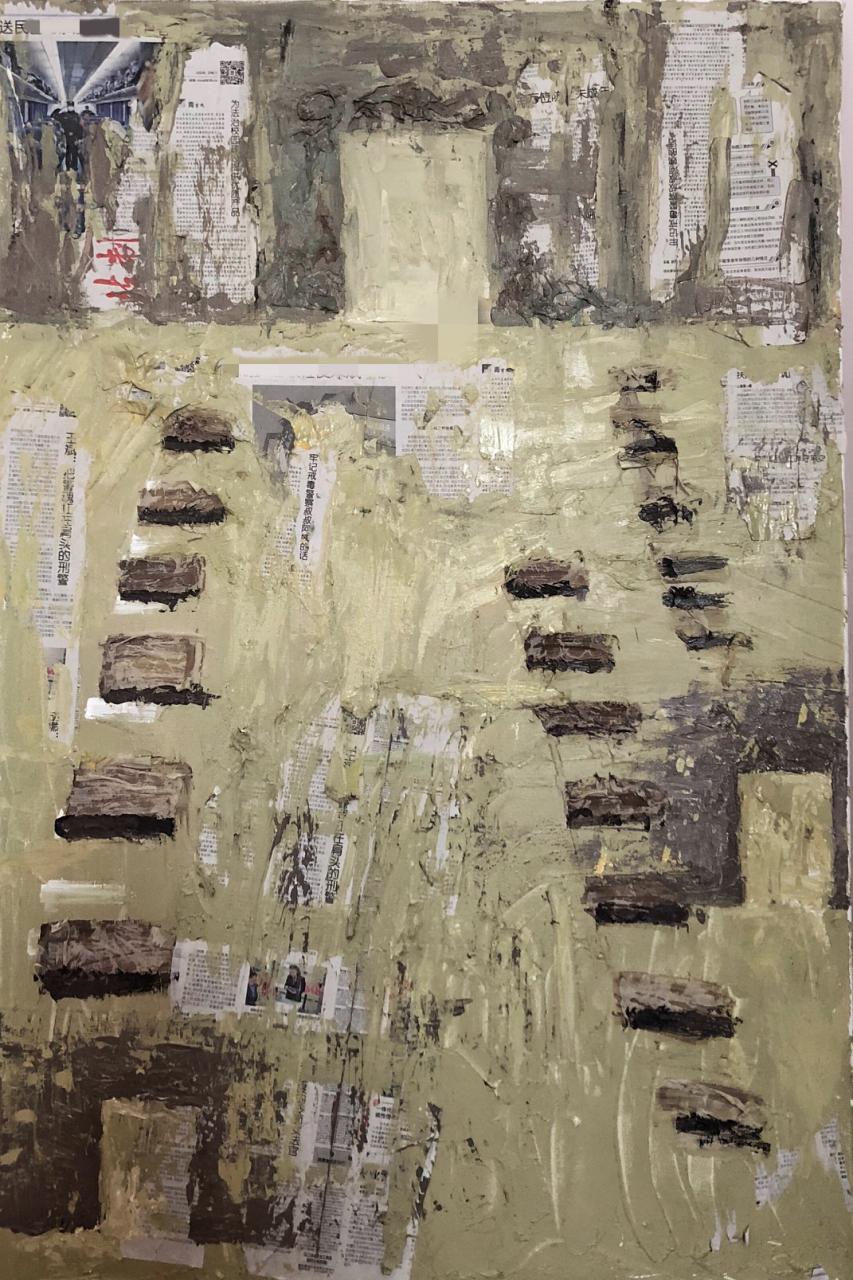 《⻔和路》 综合材料 拼贴 丙烯 80cm×120cm2020