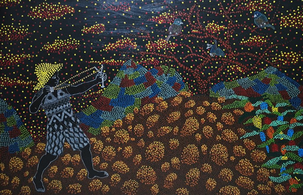 《童年趣事——惊弓之鸟》 代东亮 2020 年 100×150cm 布面油画
