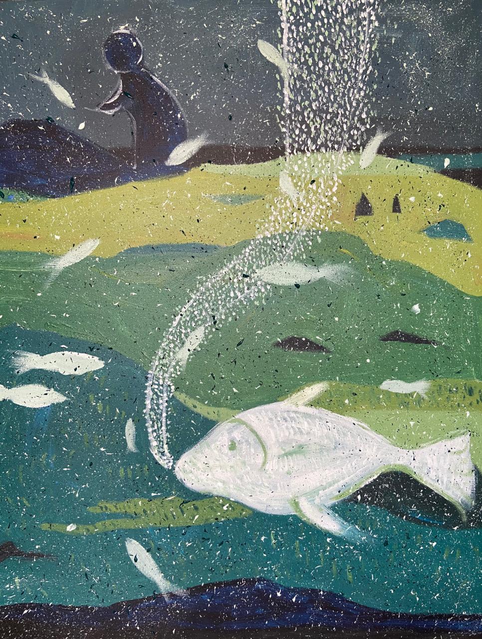 《追忆——捕鱼》布面油画 80✖60CM2019年