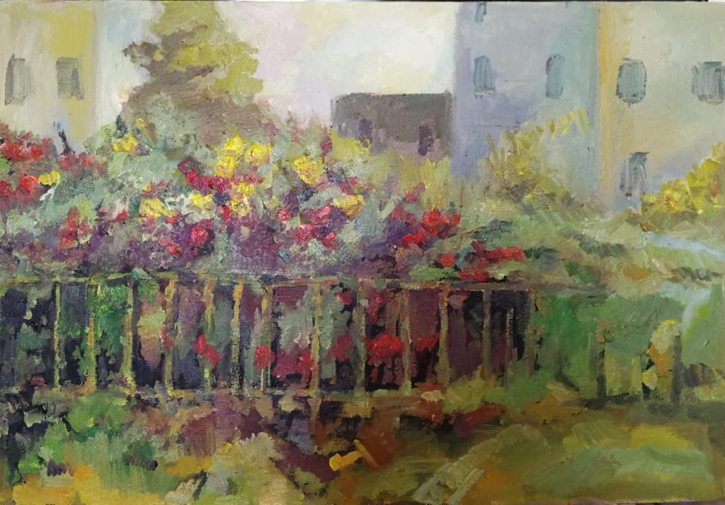 缪欣,《花园里2》,布面油画,60cm×80cm