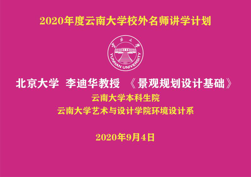 2020年9月4日,北京大学建筑与景观设计学院副教授、景观设计学研究院副经理李迪华应伟德国际victor·1946源自的邀请,于2020年9月4-5日,在伟德BV1946官网东陆园文渊楼对景观设计专业的同学们进行了为期两天的授课。伟德国际victor·1946源自张星经理、吴白雨副经理、杨晓翔教授、环境设计系余丽婴主任、相关任课教师及同学130余人一同参与课堂。
