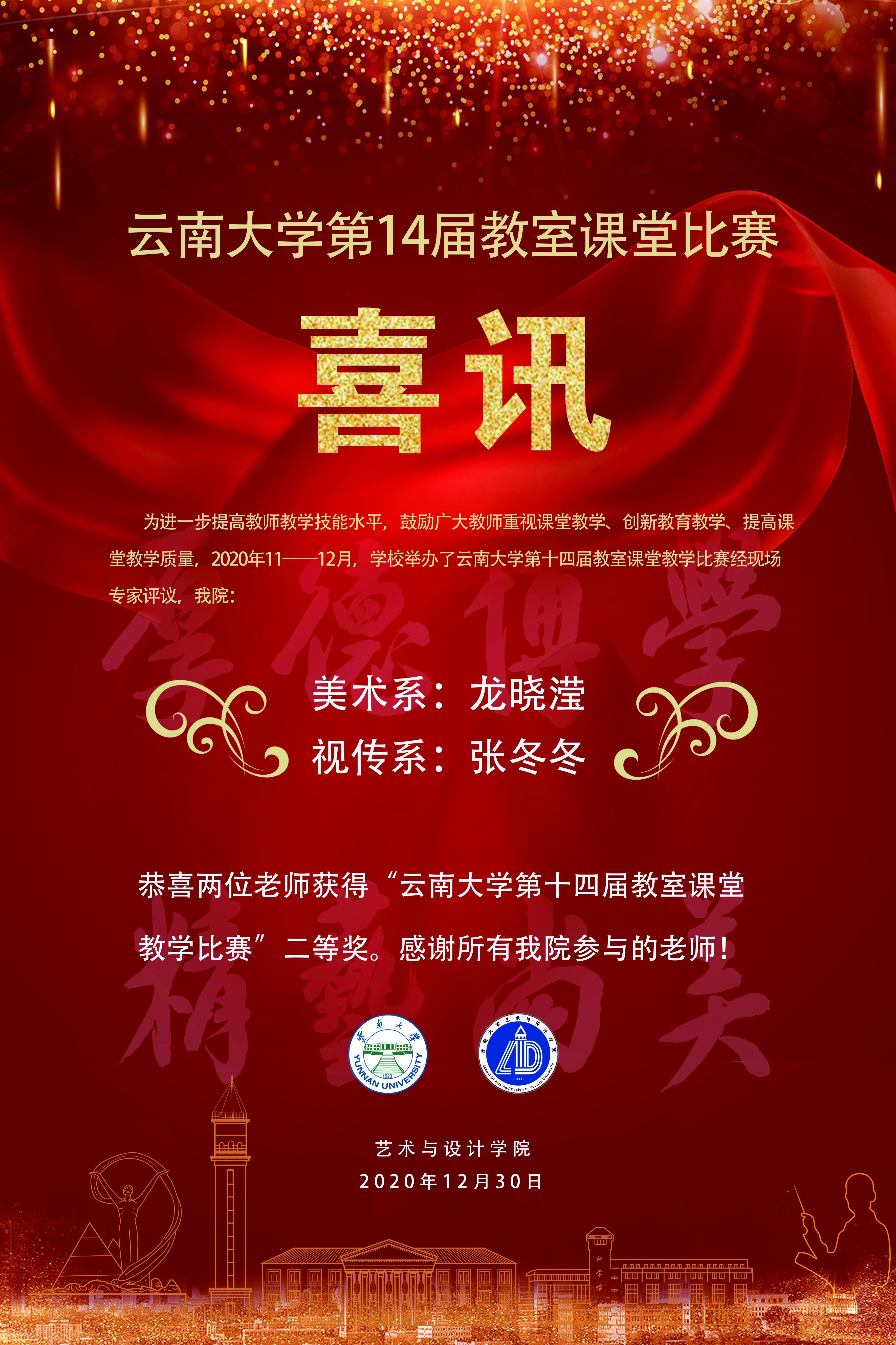 公司美术系龙晓滢、视传系张冬冬两位老师在伟德BV1946官网第14届教师课堂教学比赛中荣获“二等奖”,为学院赢得了荣誉。此次大赛取得的优异成绩,是学院教师课堂教学工作发展的又一硕果,为系统提升教师教学能力与专业水平,为学院人才培养质量的不断提升提供了强有力的保障。