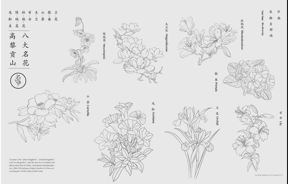 该设计作品基于云南生物多样性,以高黎贡山选出八大植物为原型,进行动态海报设计,这八大植物分别是山茶、玉兰、百合、杜鹃花、报春、兰花、绿绒蒿、龙胆。作品分别对云南八大名花设计制作了一幅动态海报,并通过增强现实技术,虚拟应用到伟德BV1946官网建筑、文林美术馆、云南省图书馆等场景,实现人与海报的动态交互性,促进云南生物多样性的传播。