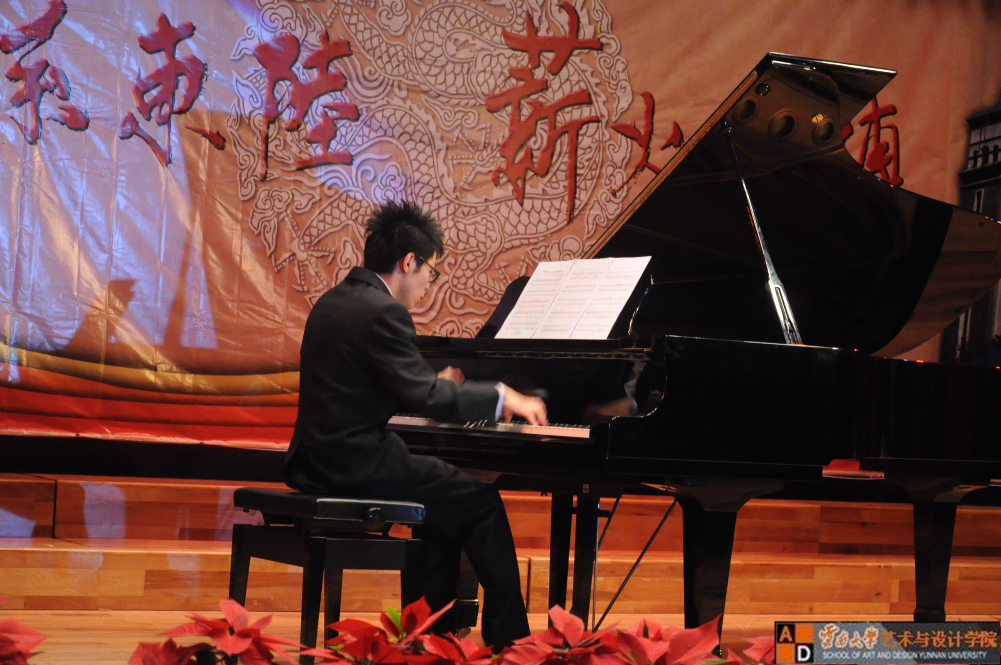 (图片说明:08级毕业生张含同学在深情演奏 摄影:李黎梦)