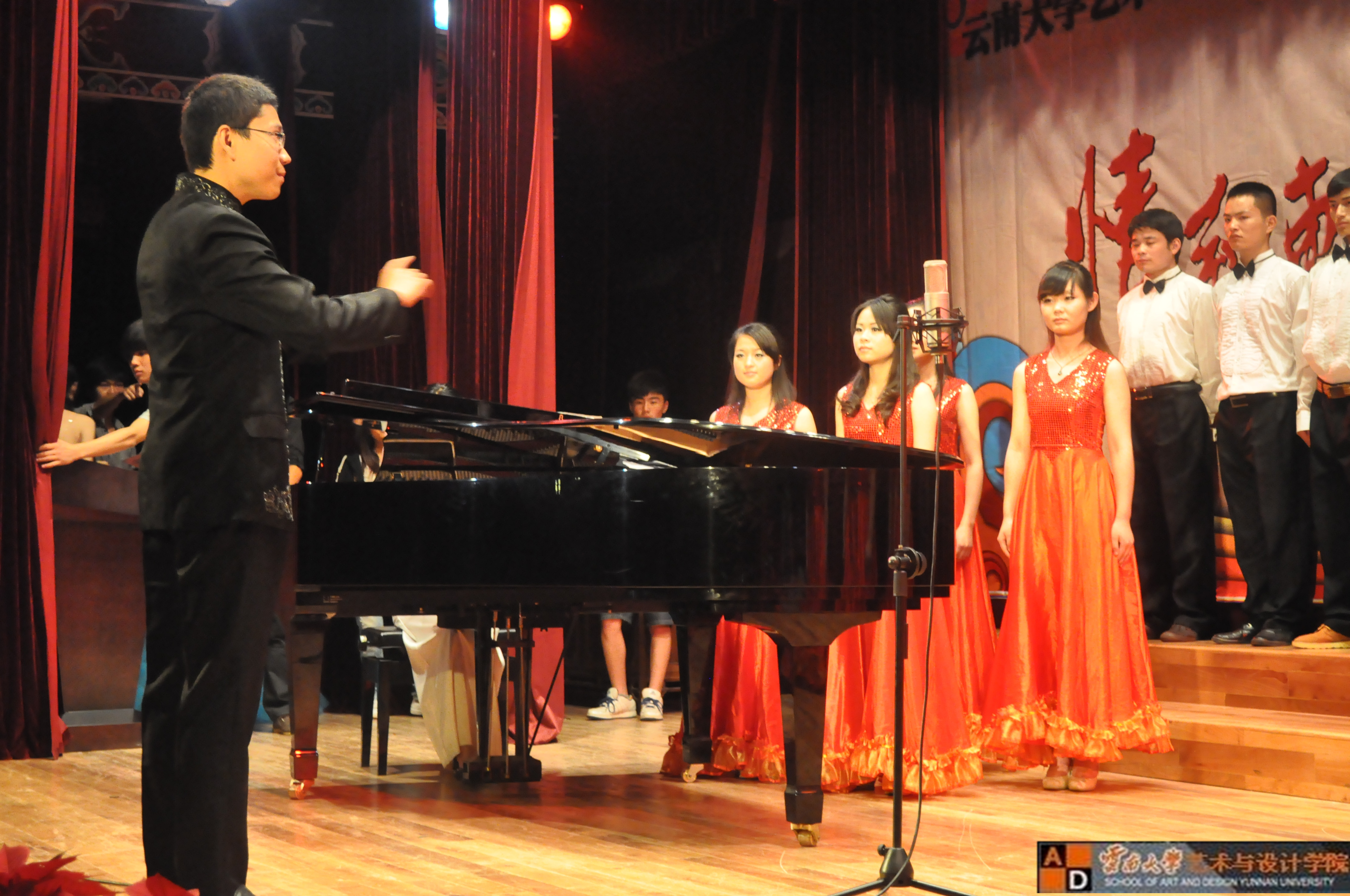 19点30分一首优美动听的《我的歌声里》拉开了晚会的序幕。10级音乐学的同学带来的《生命之舞》,展现了自然地魅力以及魄力。08级毕业生普菊双和吴金龙的一首《我的祖国》唱出了青年的热血与激情。