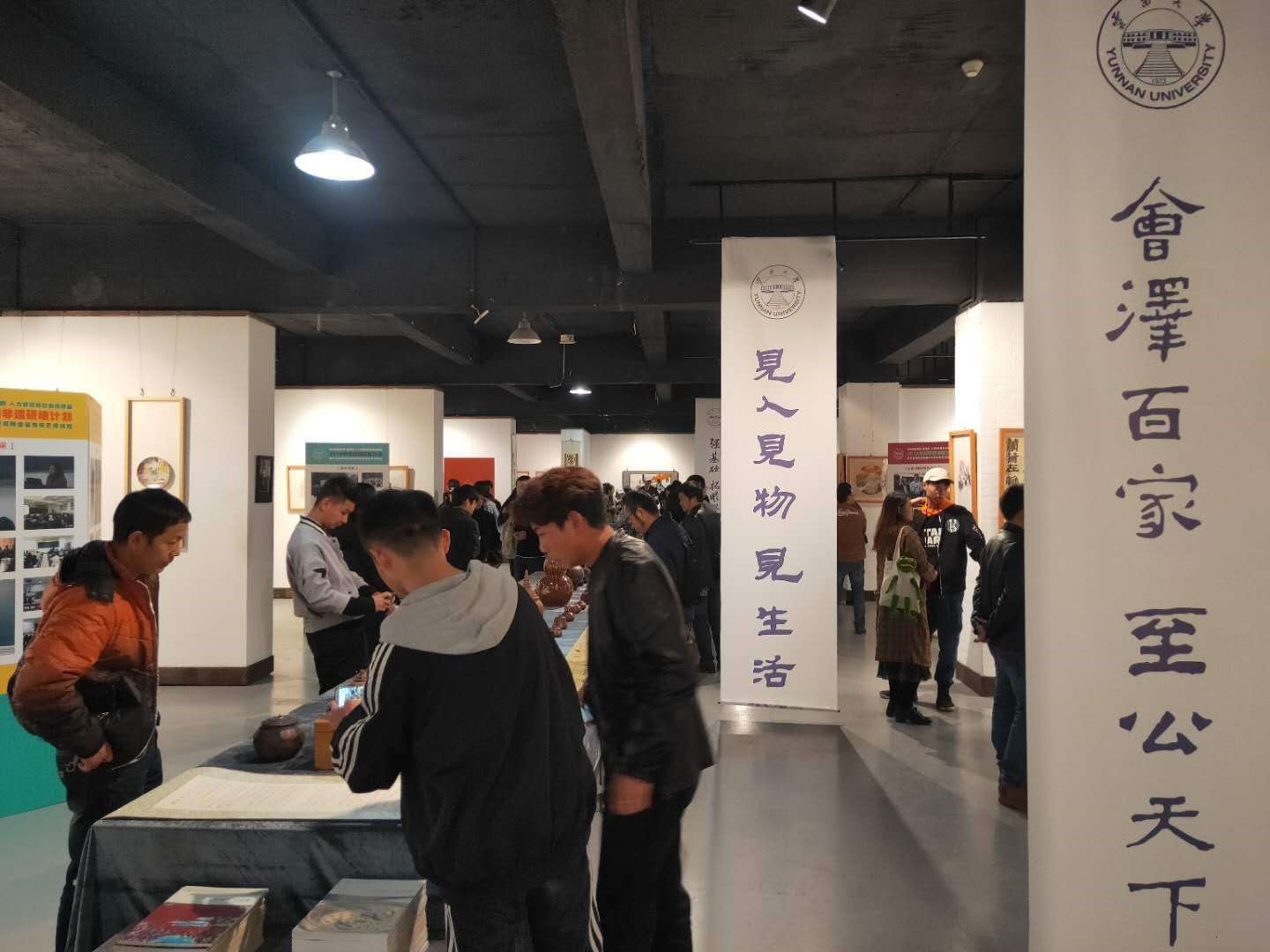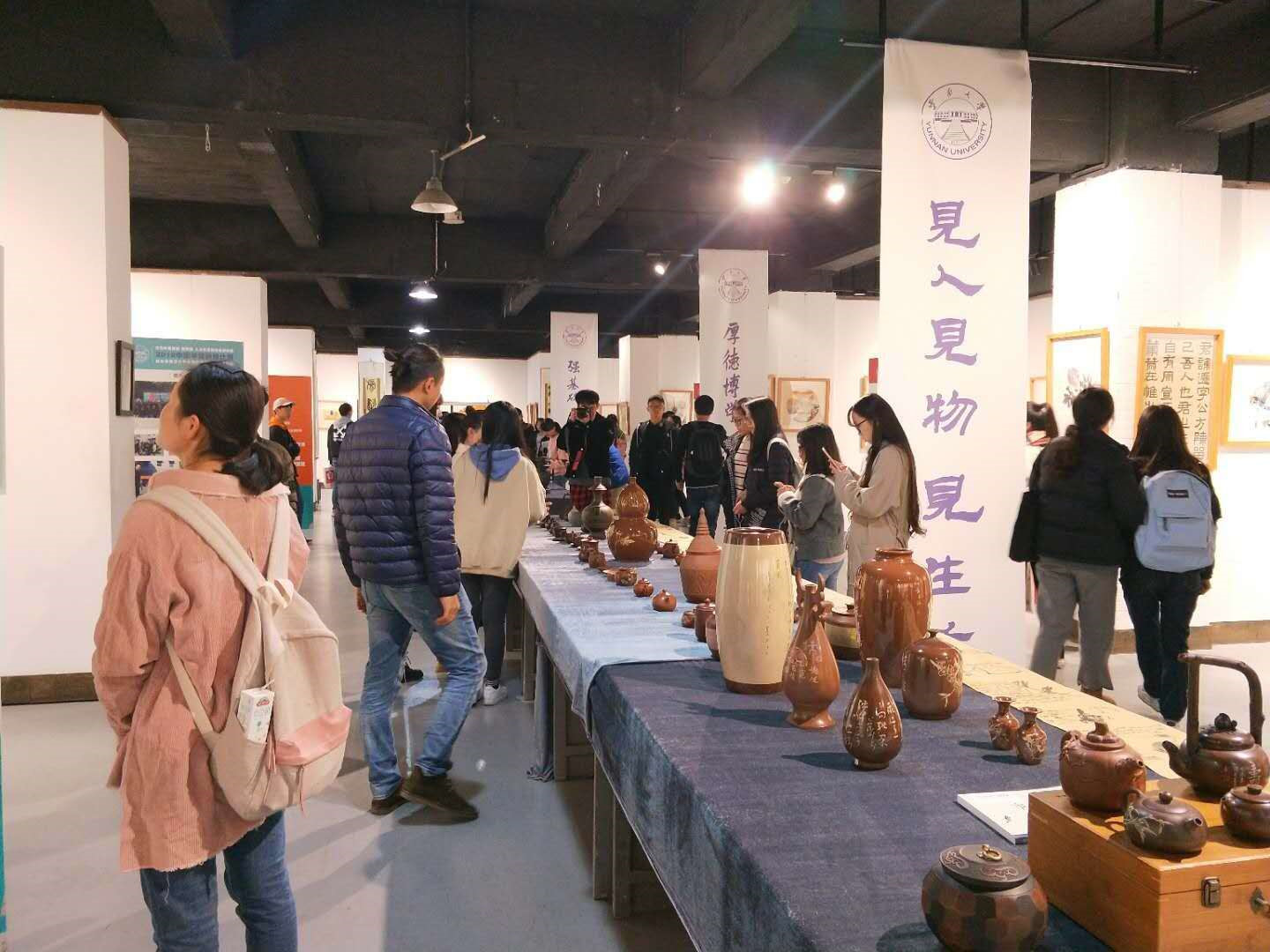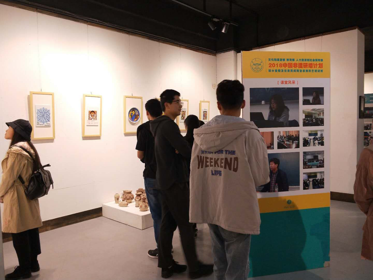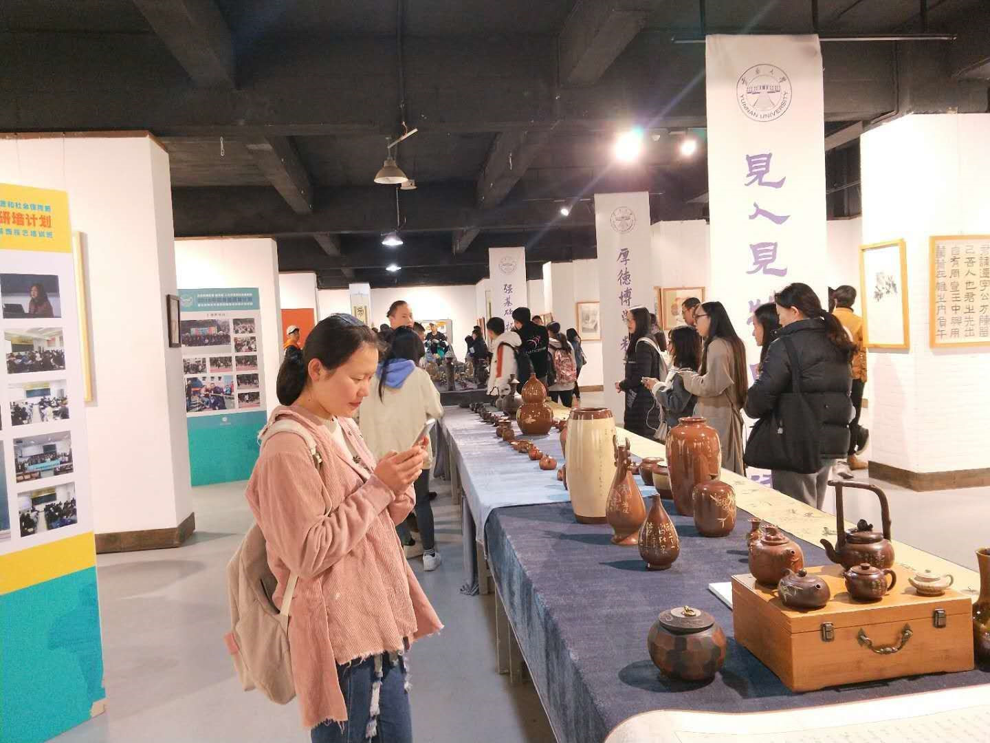 15:00“非遗研培班教学成果暨中华优秀传统文化传承基地建设成果展览”在东陆校区科学馆云大美术馆开展,研培班学员和云大师生500余人参观了展览。
