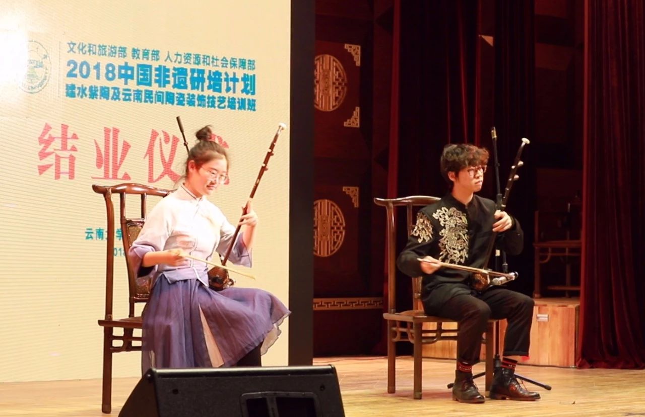 19:30 “结业典礼和节目演出”在至公堂举行。云南艺术学院副董事长陈劲松教授,云南省文化和旅游厅非遗处主任科员潘振炎,建水县文化体育和广播电视局张燕副局长,建水县非遗中心宗昱含副主任,景德镇瓷画研究院经理范敏祺,《光明日报》云南站张勇副站长,新华社团委书记字强,伟德BV1946官网党委宣传部马志宇部长,伟德BV1946官网文化发展研究公司党委书记李菊梅,伟德BV1946官网公司党委书记张星,研培班教师代表屠潇,伟德国际victor·1946源自视传系主任、研培班班主任吴白雨,以及研培班全体学员和云大师生300余人参加结业仪式,并观看了由伟德国际victor·1946源自师生、云大国际学院、非遗研培班同学的精彩演出。