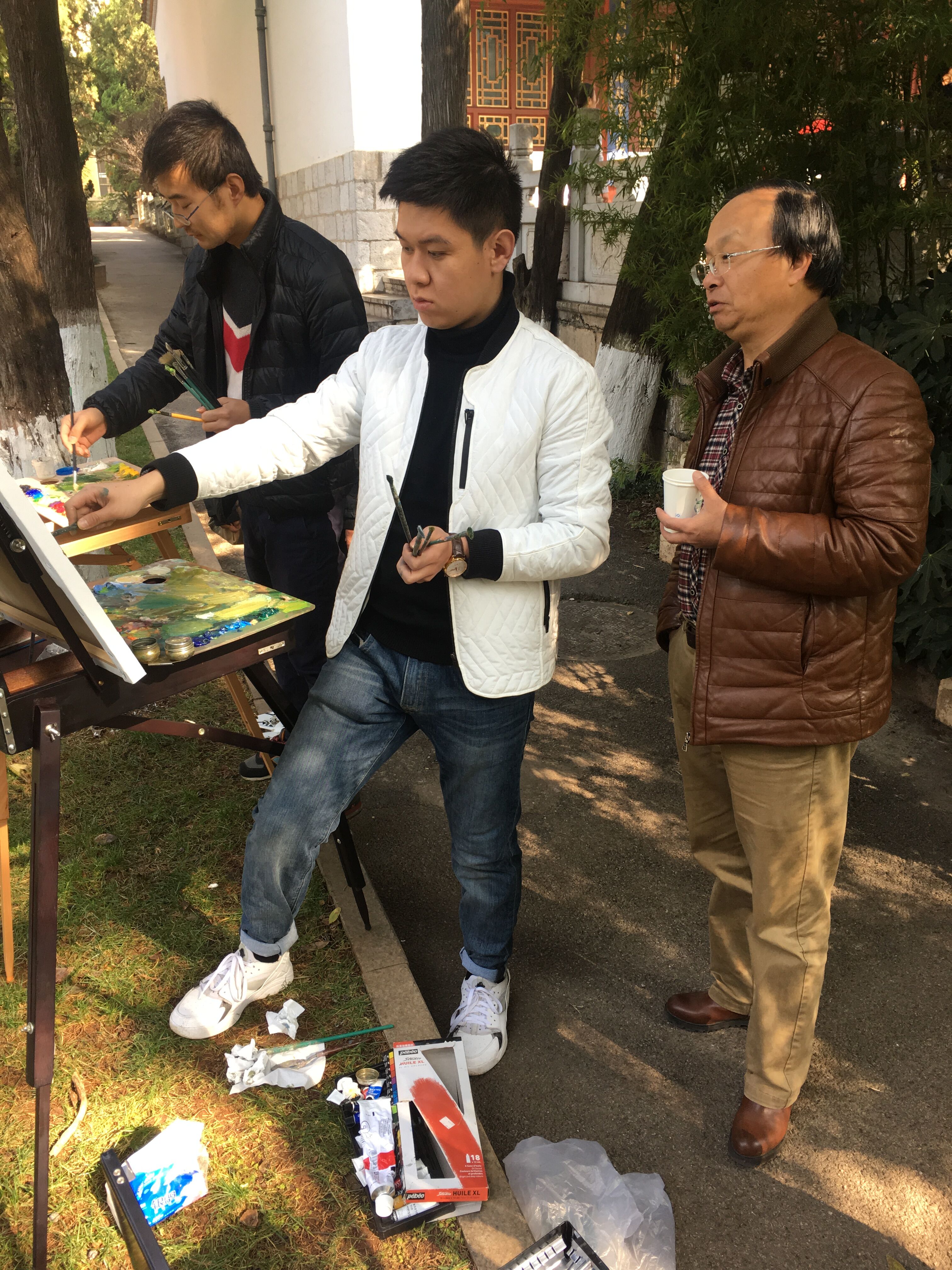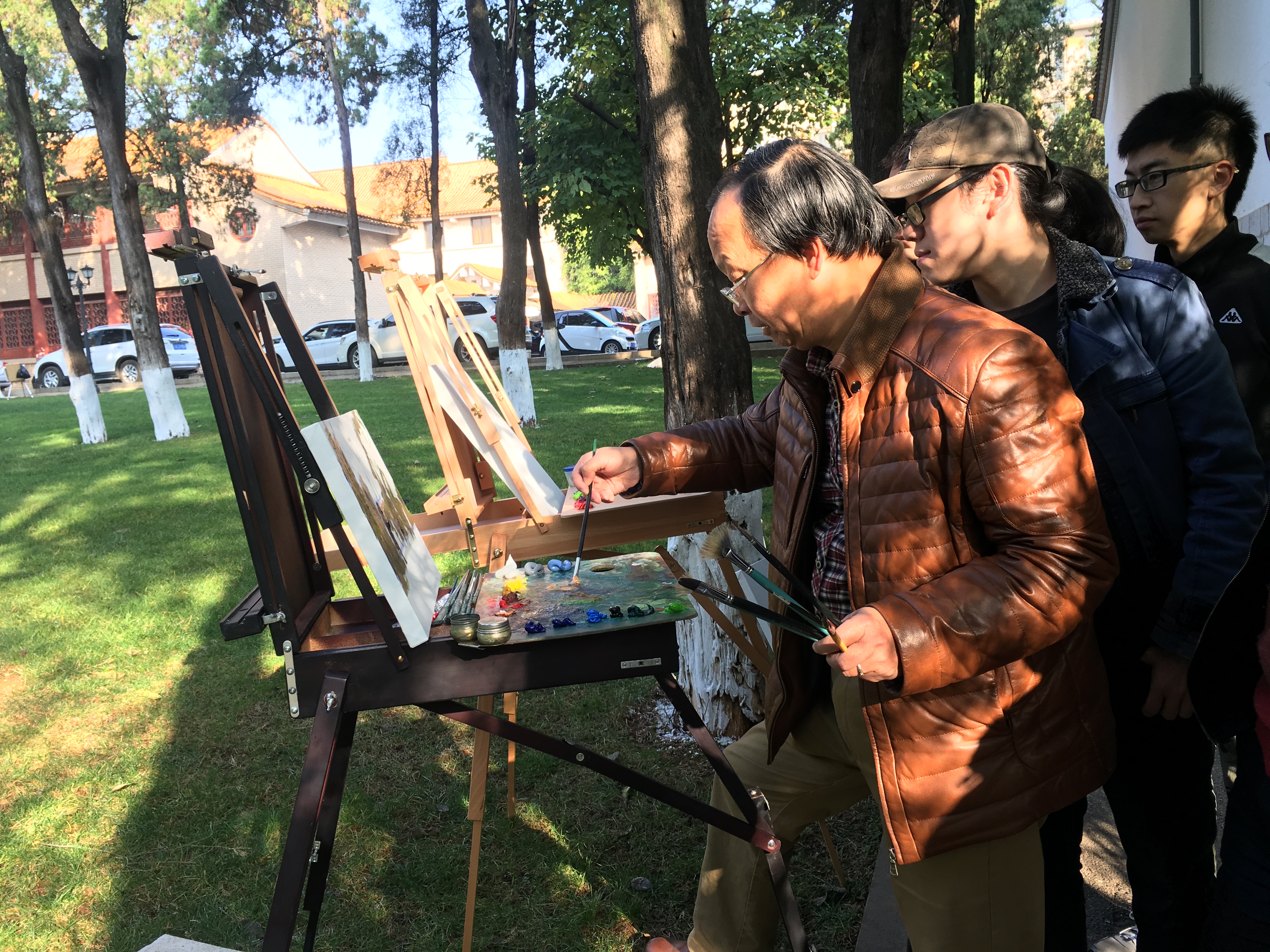 之前,学院进行过“我爱云大”校园写生活动,这一活动的意义不仅仅是让员工练习绘画技巧,更重要的是让员工从艺术和绘画的眼光体察云大风光的韵味,用画笔把母校的景色定格在画布上。时隔四五年后,张教授希望通过自己的亲身示范和大力倡导,启发员工多画校园之景,多品母校之韵。