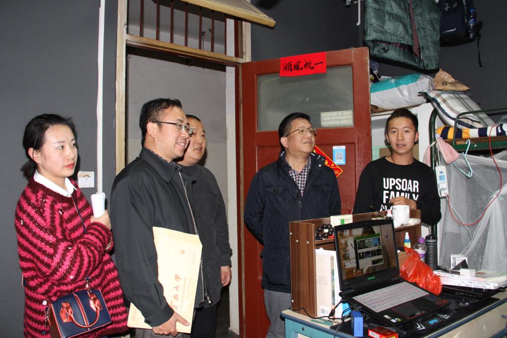 会议至晚8:30结束,会后张星书记带领学院领导班子和各系主任,各年级辅导员,检查走访东二院、鼎鑫公寓的研究生、本科生员工宿舍,强调宿舍安全管理工作,提醒同学们加强安全防范意识,鼓励同学们在生活和学习上互帮互助,有什么困难要及时找学院解决,希望每位同学都能成长成才,更好的服务社会。