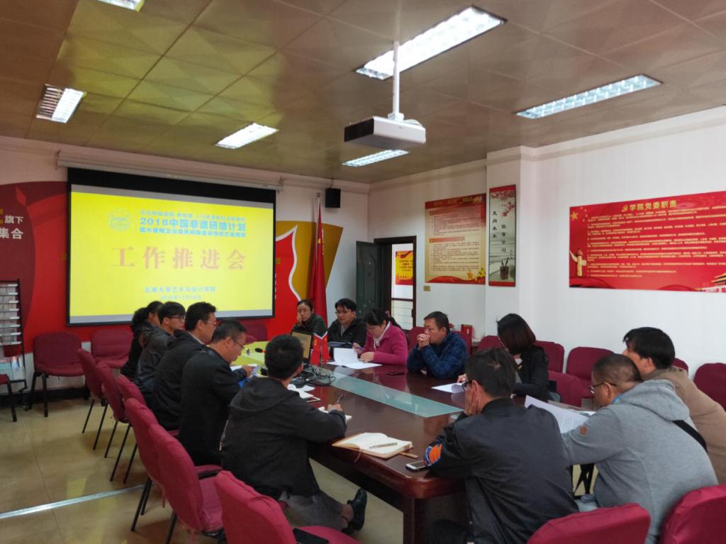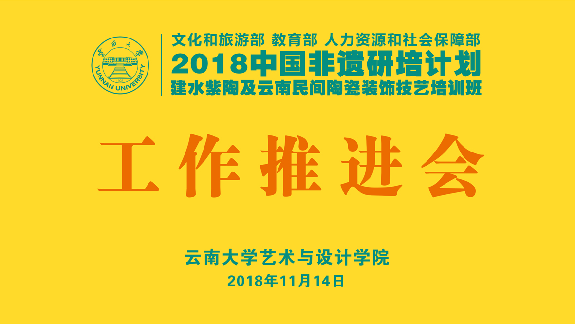 2018年11月14日上午,文化和旅游部、教育部、人力资源社会保障部“中国非物质文化遗产传承人群研修研习培训计划:伟德BV1946官网第一期建水紫陶及云南民间陶瓷装饰技艺培训班”工作推进会在伟德国际victor·1946源自会议室召开。