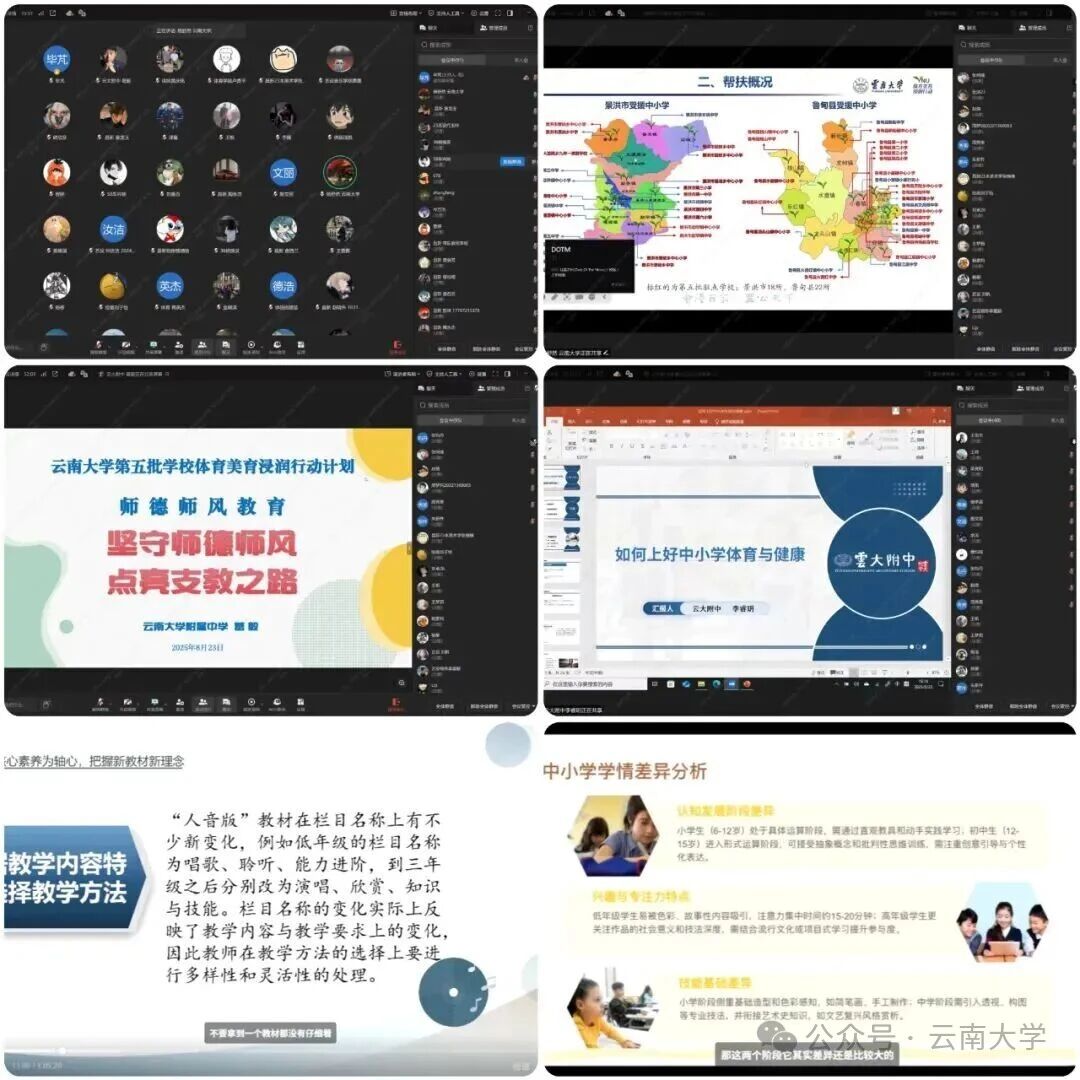 为确保支教员工顺利适应教学环境,快速完成从员工到教师的身份转变,本科生院及三个学院组织开展了多轮岗前培训。期间,邀请多位具有深厚教育情怀和丰富教学经验的云大附中、附小的一线教师,结合《义务教育课程标准(2022年版)》,对支教员工进行全面系统地培训指导。同时,邀请多次参加浸润行动的带队教师以及前四批的优秀支教员工代表,与第五批支教师生开展经验交流分享;邀请校医院综合门诊部主任陈云洁为支教师生作疾病预防及安全教育培训。