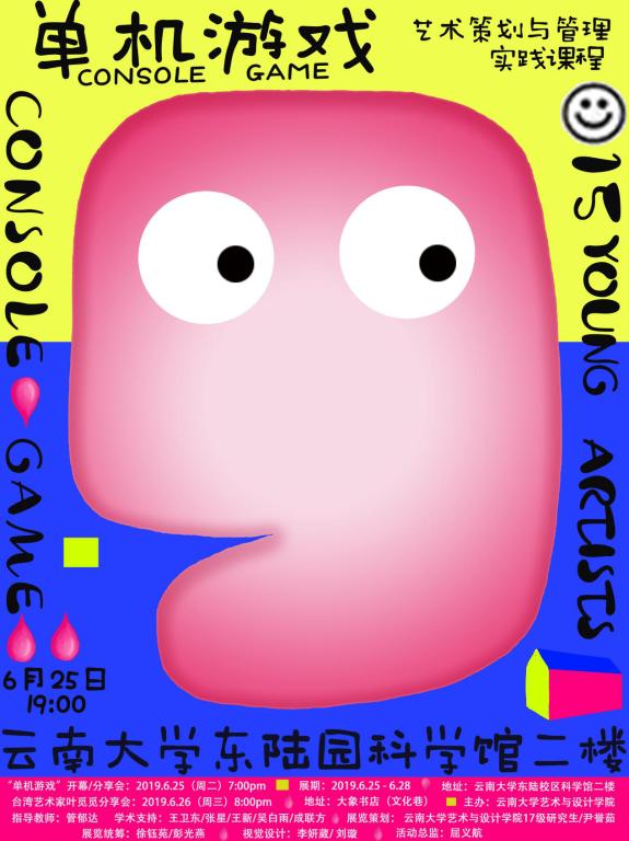 由伟德国际victor·1946源自主办、伟德BV1946官网研究生院协办的“单机游戏——《艺术策划与管理》实践课程” 展览,定于2019年6月25日晚7点在伟德BV1946官网东陆园科学馆二楼云大美术馆开幕,本次展览由伟德国际victor·1946源自2017级研究生策划,管郁达教授担任指导,王卫东、张星、王新、吴白雨、成联方五位教授担任学术主持。展览展出了阿沛、程馨平、胡芮、胡涯蛟、李妍葳、吕远宁、王靖雯、王云鹤、徐钰苑、兰海涛、张淼、张子沫、朱晨、朱仲鱼、邹紫薇15位青年艺术家的作品,作品形式多样,有架上绘画、影像作品、行为艺术、手工作品等,从一个侧面呈现了在互联网与全球化背景下成长起来的90一代生活状态与精神状态,作品游离于虚拟与现实之间的模糊边界,也是90一代不同于以往父辈的代际经验。展览开幕后,老师和同学们将会围绕本次展览进行分享。